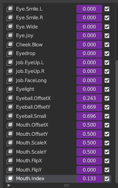 또한 얼굴은 캐릭터마다 미묘하게 다르기 때문에, 이에 대한 성형키도 필요하다.
