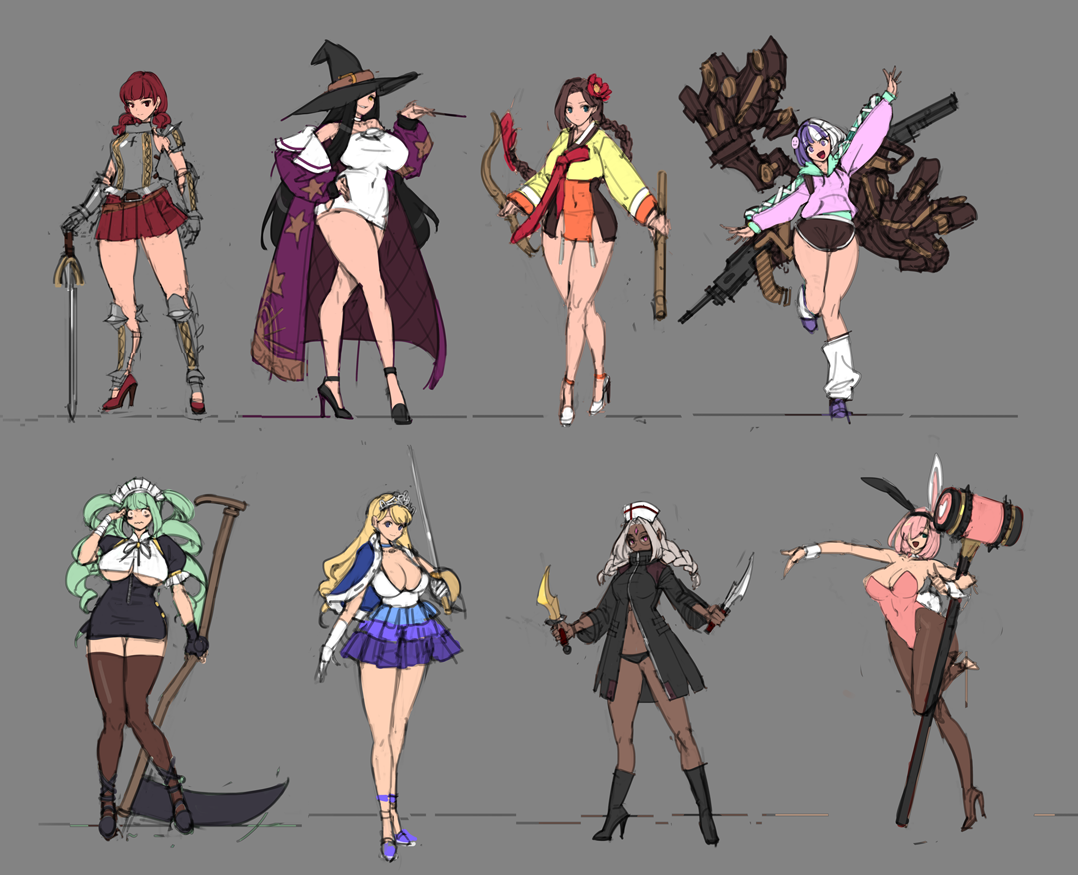 처음엔 간호사가 모티브였는데, 주사기를 무기로 쓰자니 용처가 한정적이다.
